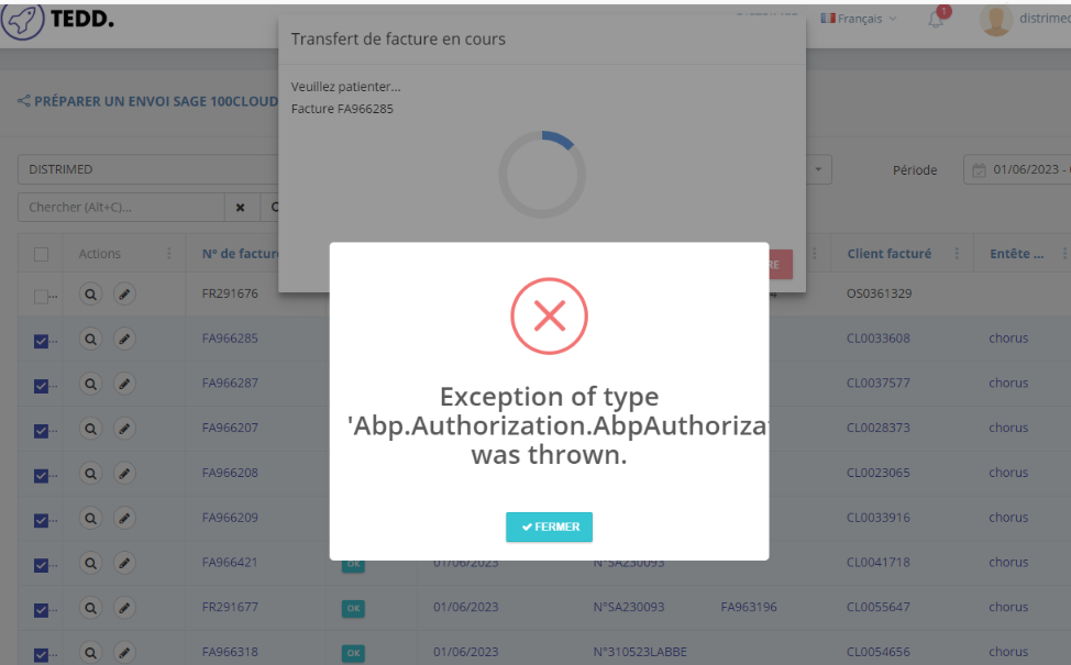 Il faut rajouter l'utilisateur dans les comptes émetteurs