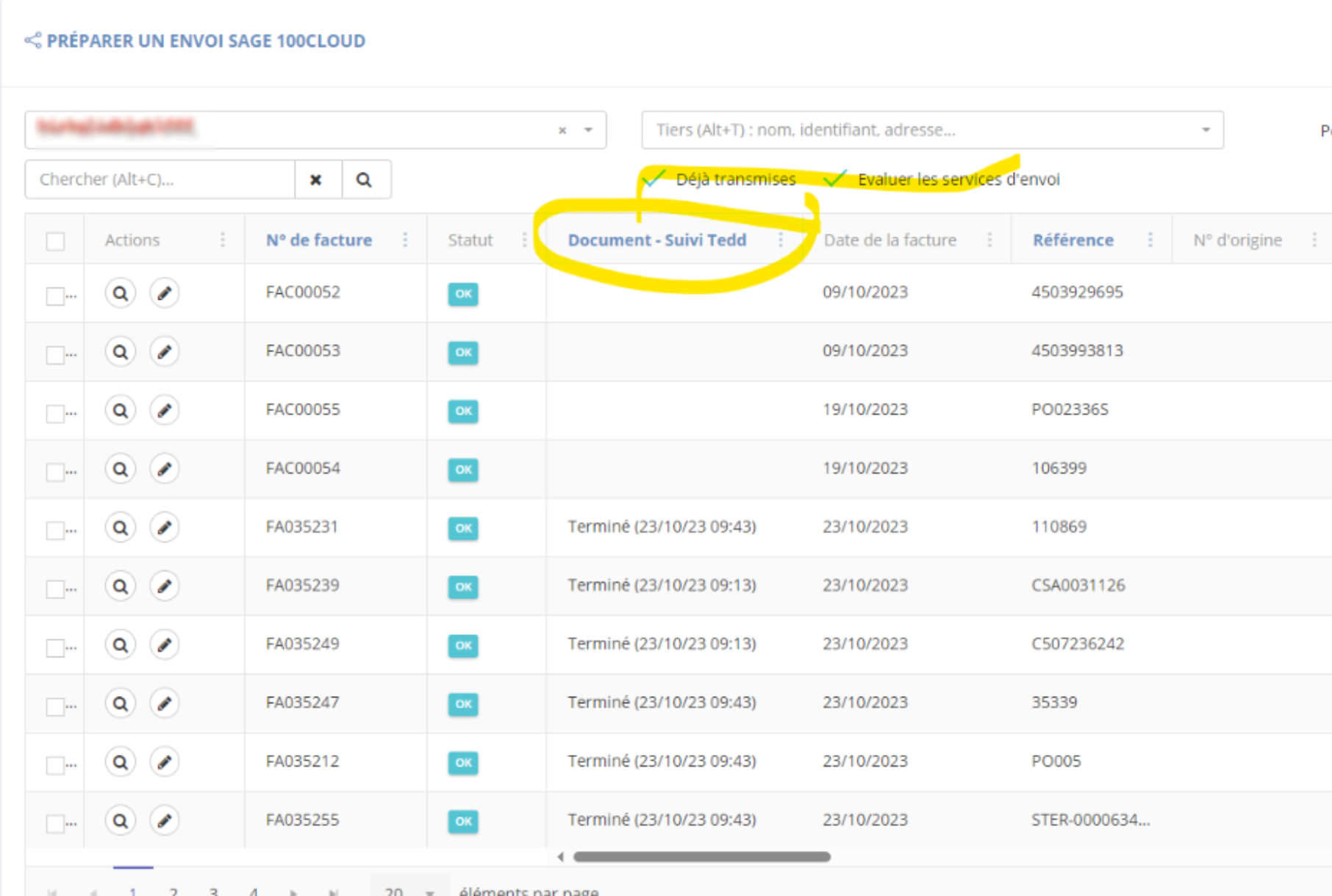 Cocher Evaluer les services d'envoi pour voir le statut se mettre à jour ( il indique si la facture respecte les critères attendu pour les traitements (chorus ok , email ok etc). )